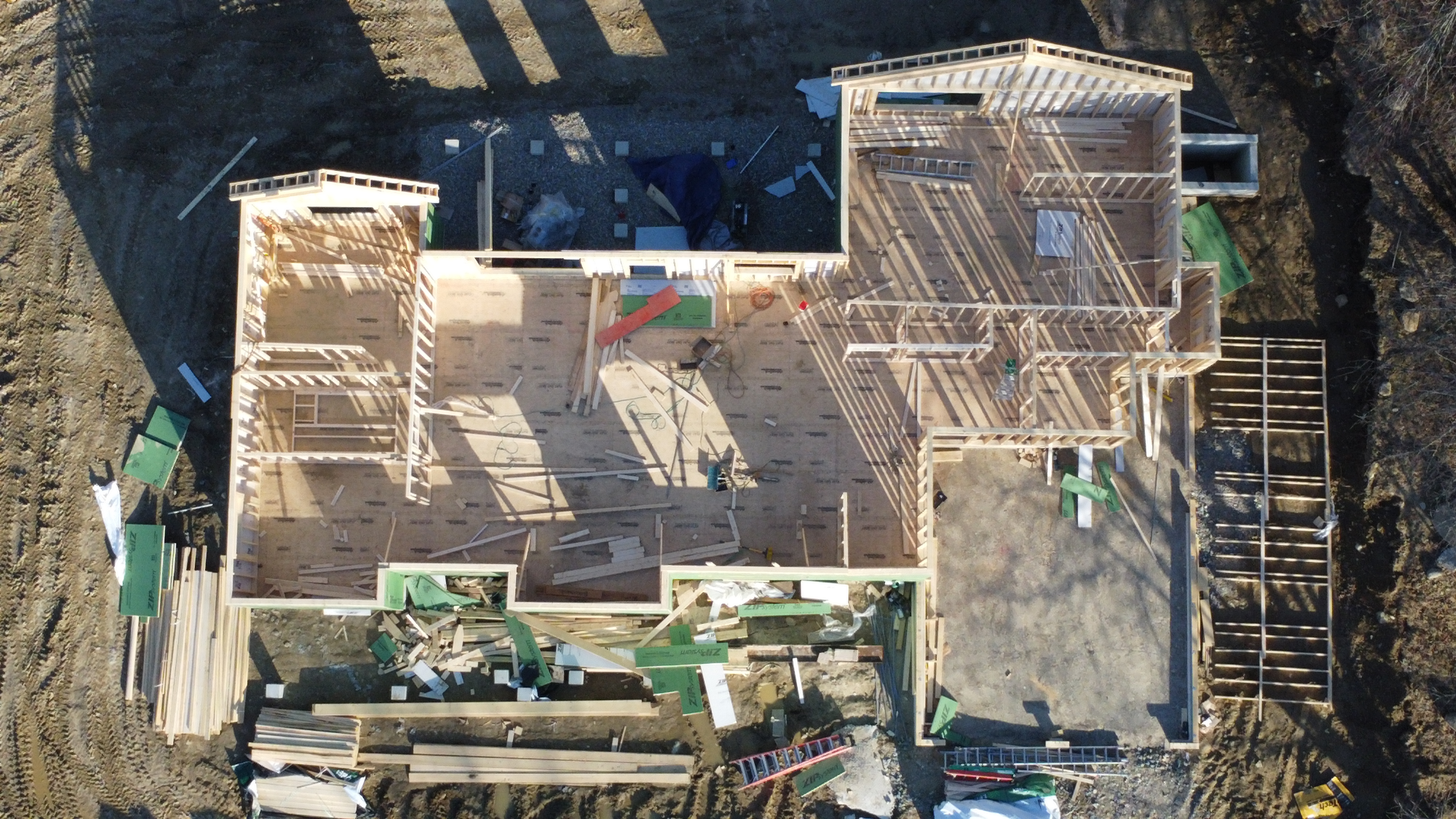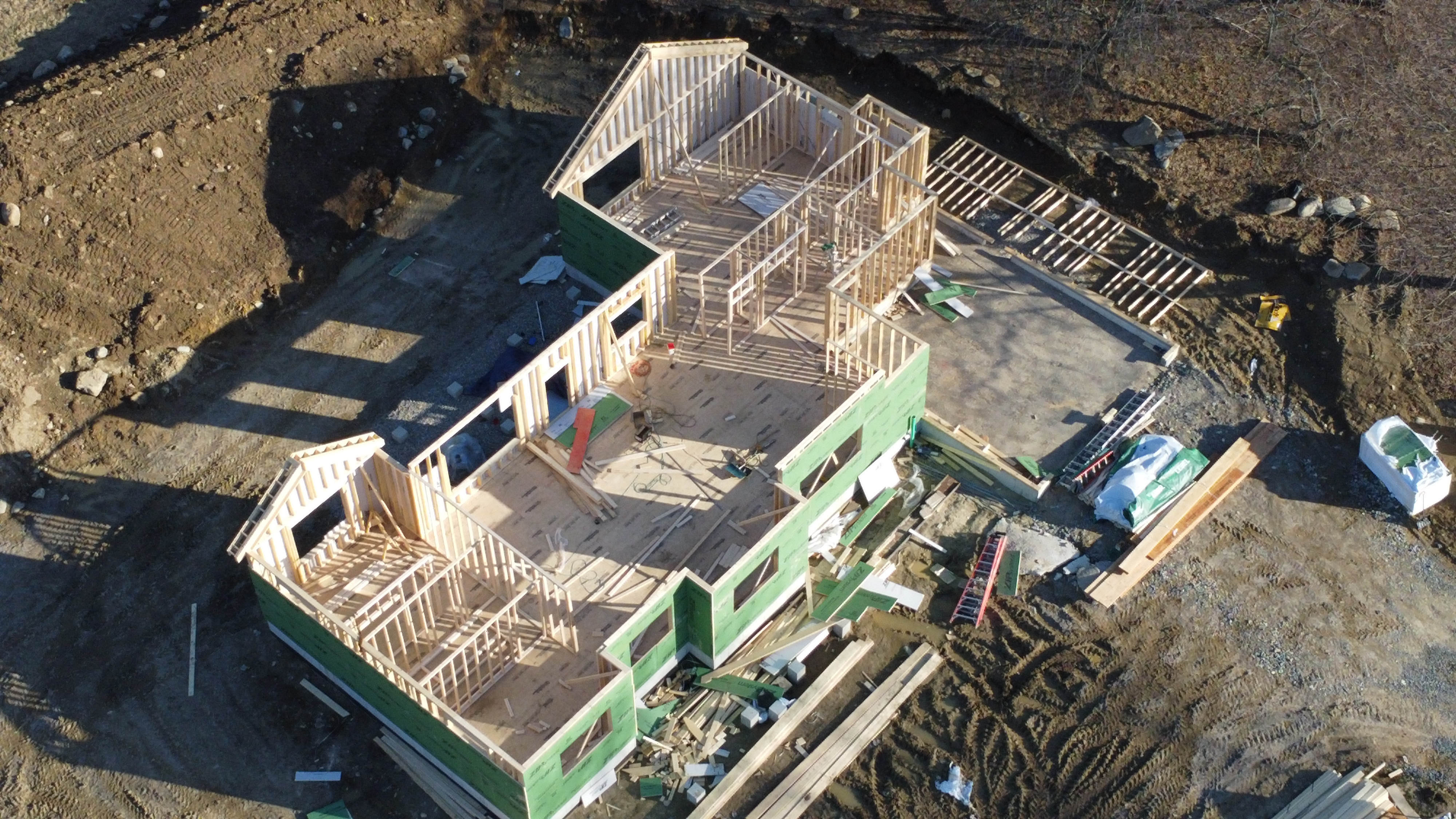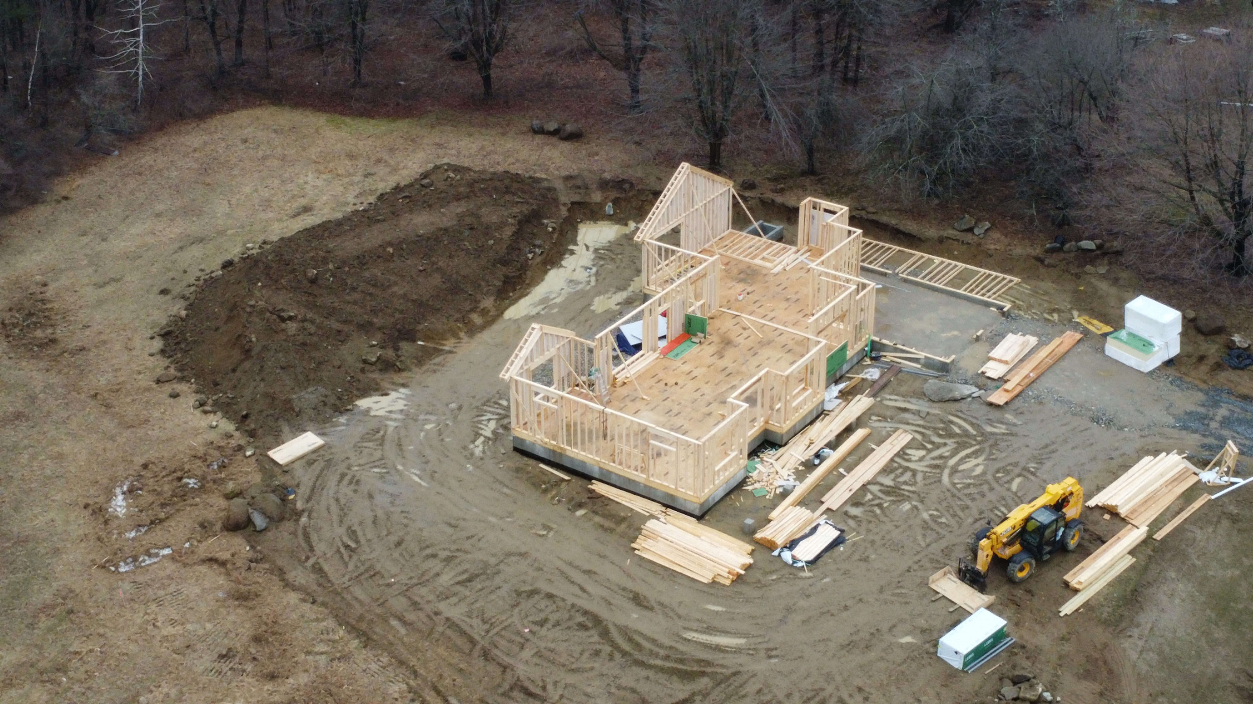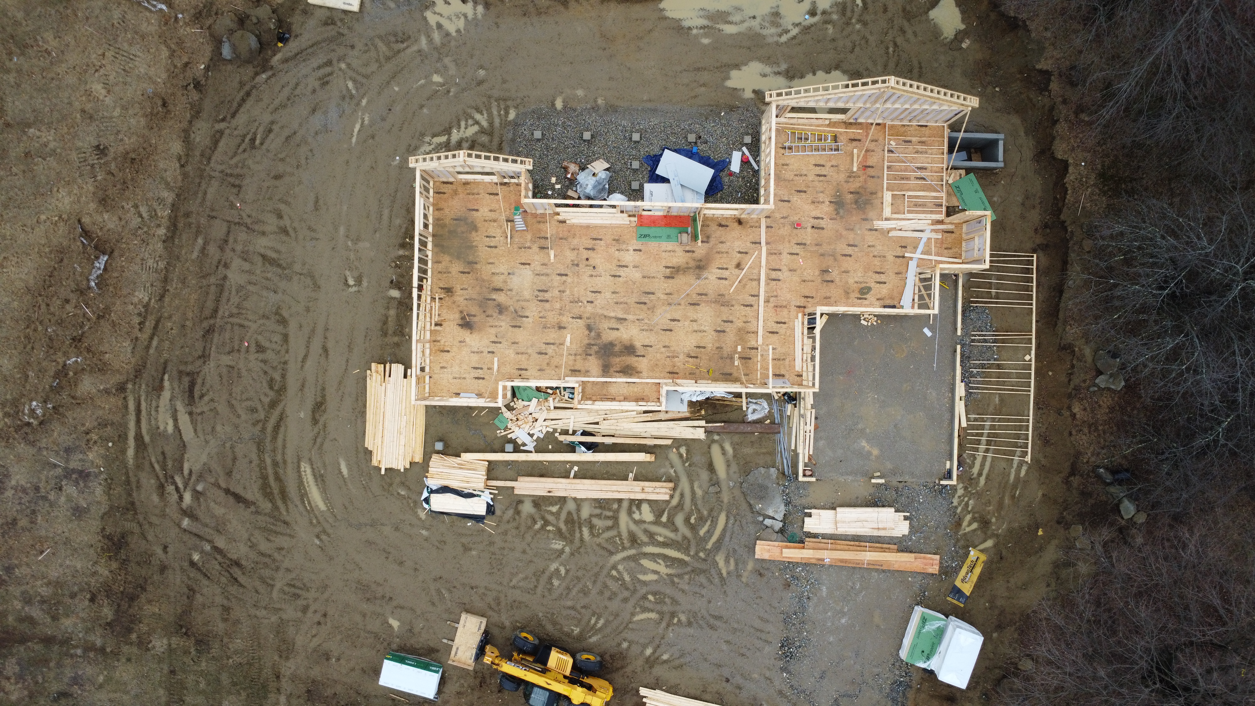 Despite the bad weather framing and exterior walls have been going up.